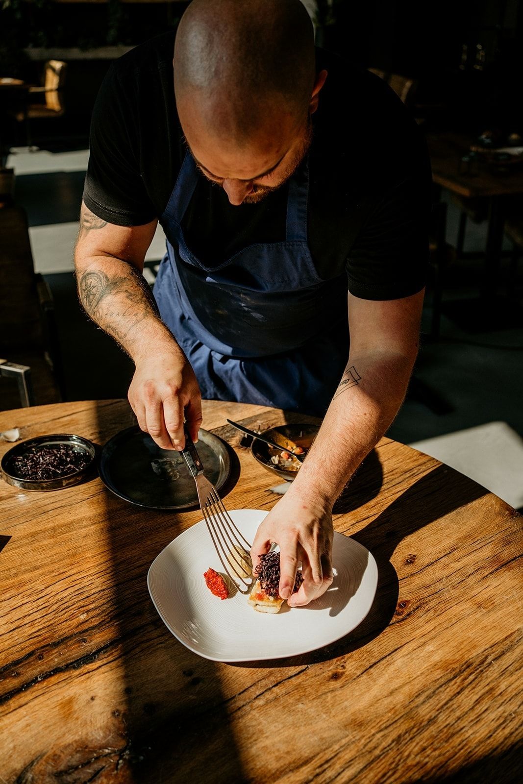 Ben jij iemand die helemaal in de ban is van wildplukken, verse kruiden en vergeten groenten? Dan is de X-Mas take-out van Native iets voor jou! Ze starten licht met een knolseldersoepje en waterkers-salie olie en tartaar van koolrabi met edamame en coquilles (optioneel). Dan hebben ze allerlei boeiende hoofdgerechtjes uitgedokterd zoals gepofte aardpeer met palmkool, tarbot in kruidenkorst met winterpostelein en schorseneren, en geconfijte konijnenbil met bospaddenstoeltjes en geuzensaus. Tenslotte eindigen ze met een ‘BANG’ met hun Tarte tatin van appel en witloof met mascarponesorbet. Extra's: Oestertjes en witloofkroketjes met currymayo.